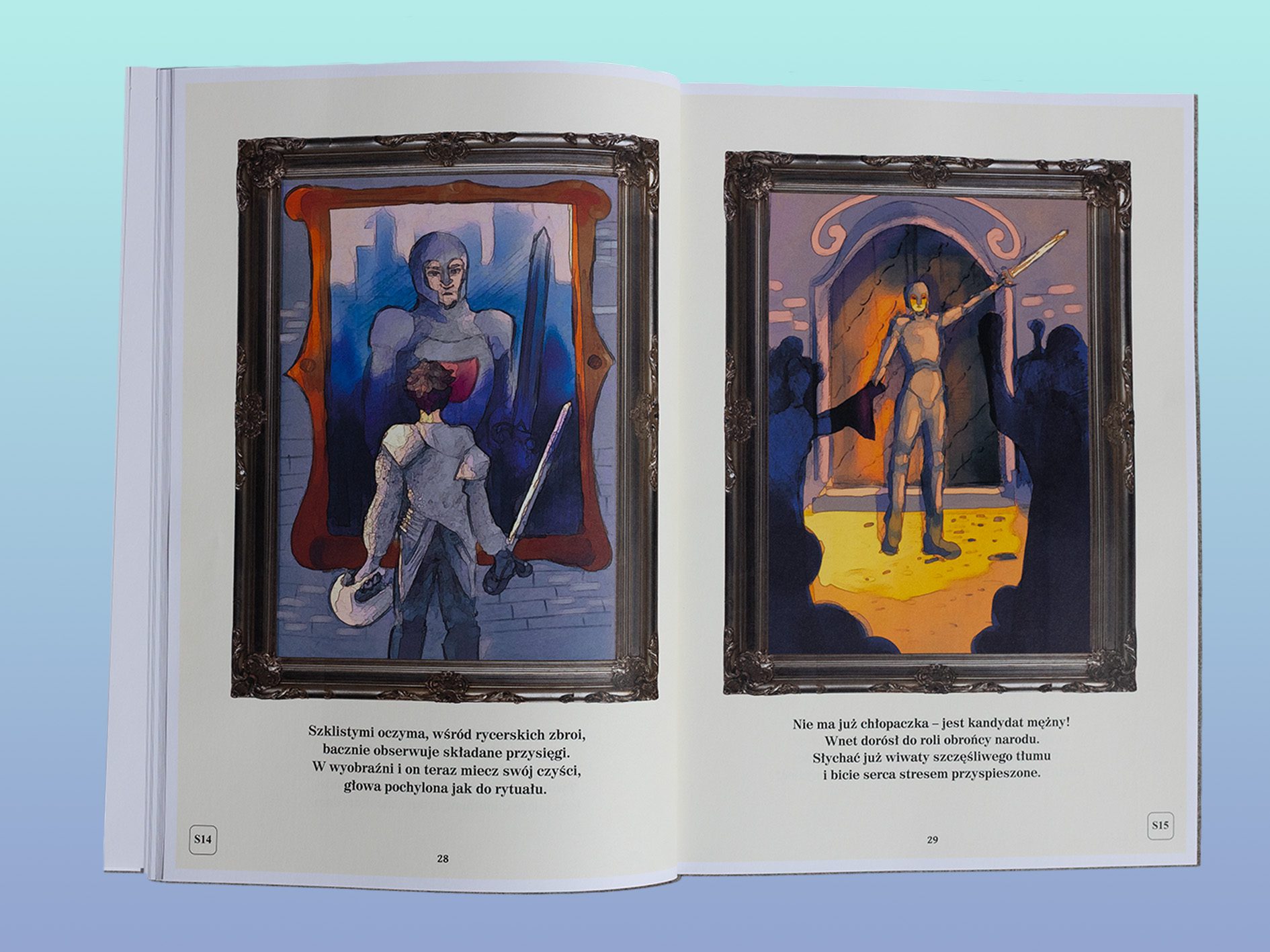 Symfonia Baśniowa to nie tylko zwykła książka – to wyjątkowa synteza sztuki muzycznej, literackiej i wizualnej. Baśń o rycerzu została ubarwiona muzyką symfoniczną oraz ilustracjami – czterech utalentowanych artystów zilustrowało każdy akapit tekstu, tworząc łącznie 25 ilustracji.